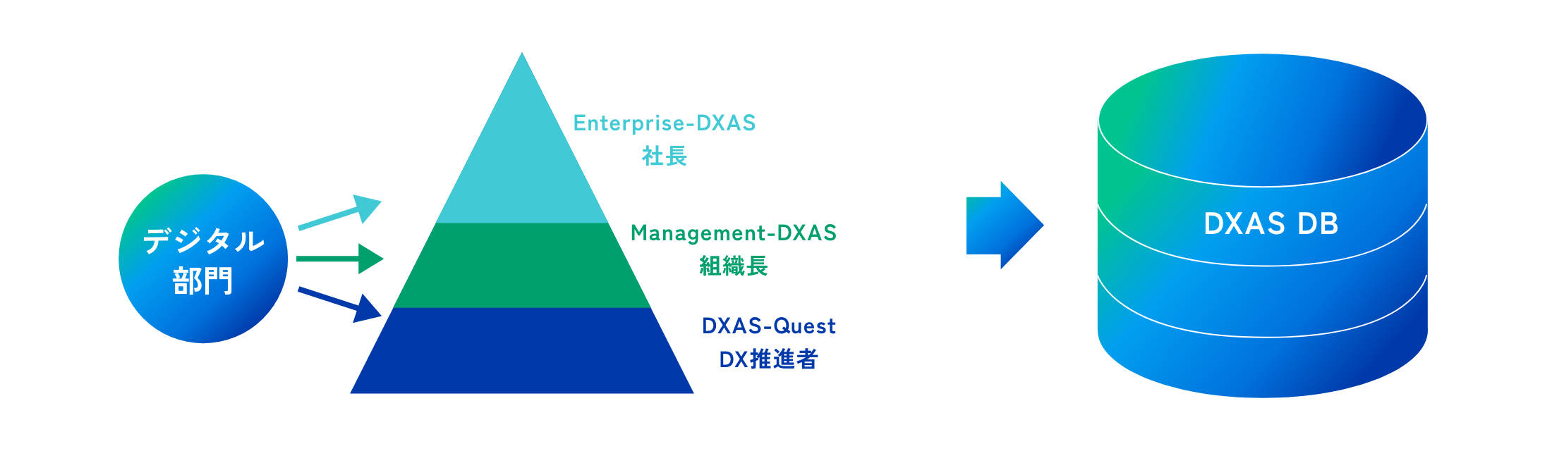 全社組織レイヤ毎にデジタル部門とのDXAS会議(DX Accelerate Summit)を設け各視点からのDX推進の議論を進めています。また各部門のDX案件を全社データベースDXAS-DBに登録し改革、改善内容の見える化と進捗の共有を進めています。