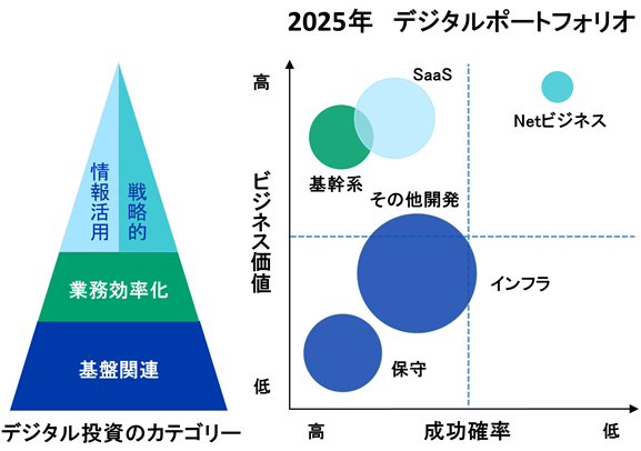 デジタル投資をデジタル基盤関連、業務効率化、情報活用、戦略的投資のカテゴリーに分類しています。