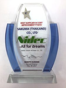 タイ現地法人SAKUMA(THAILAND)CO.,LTD.が、NIDEC TOSOK(VIETNAM)CO., LTD.様より Best Cost Improvement賞 を受賞